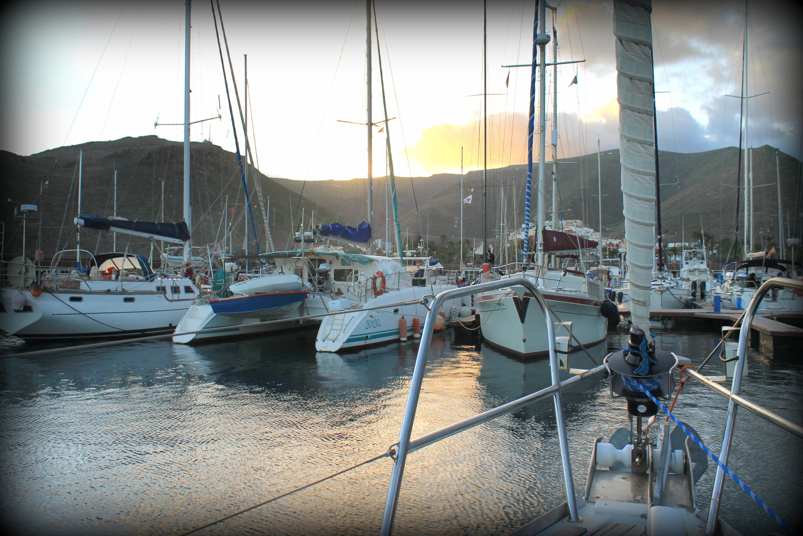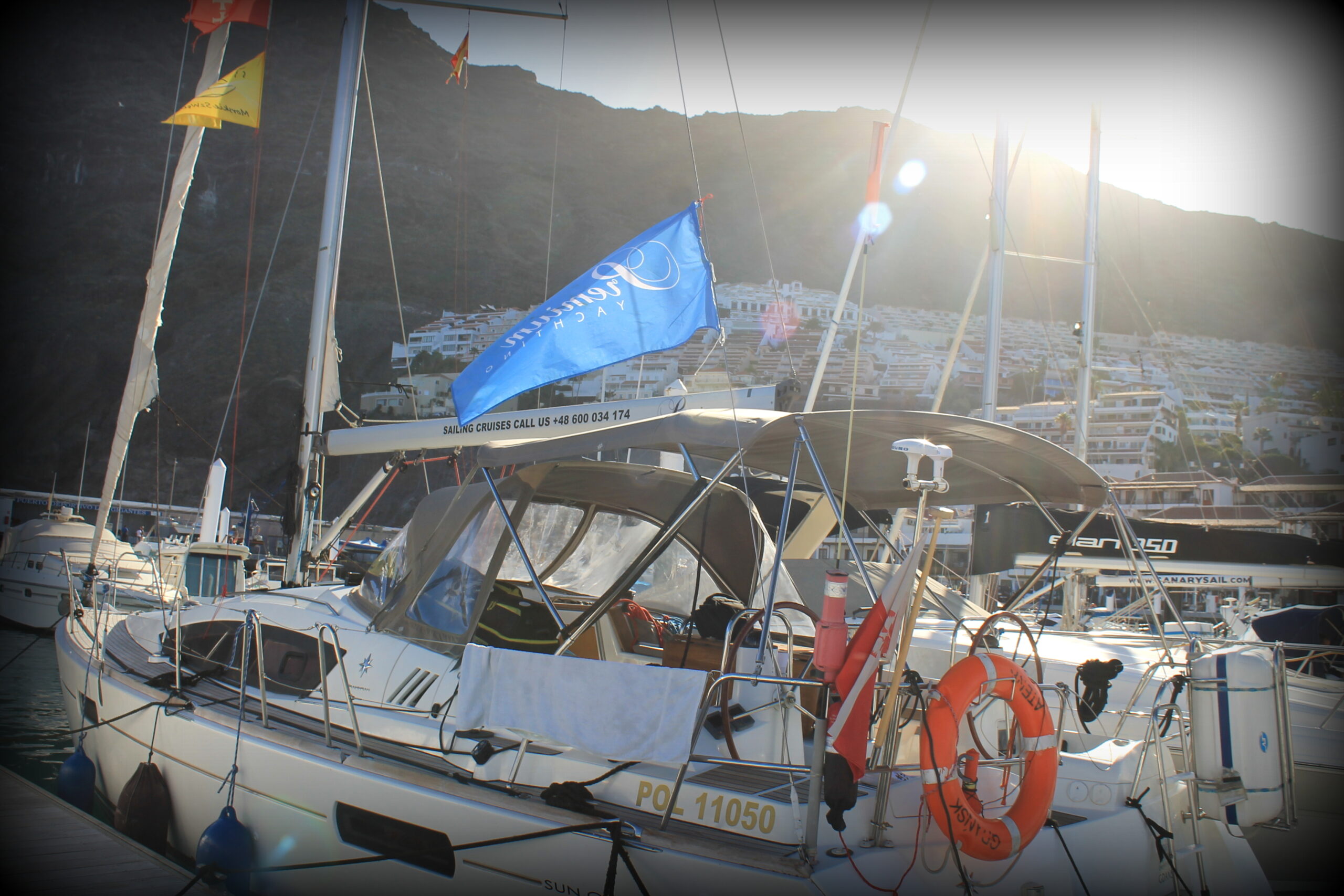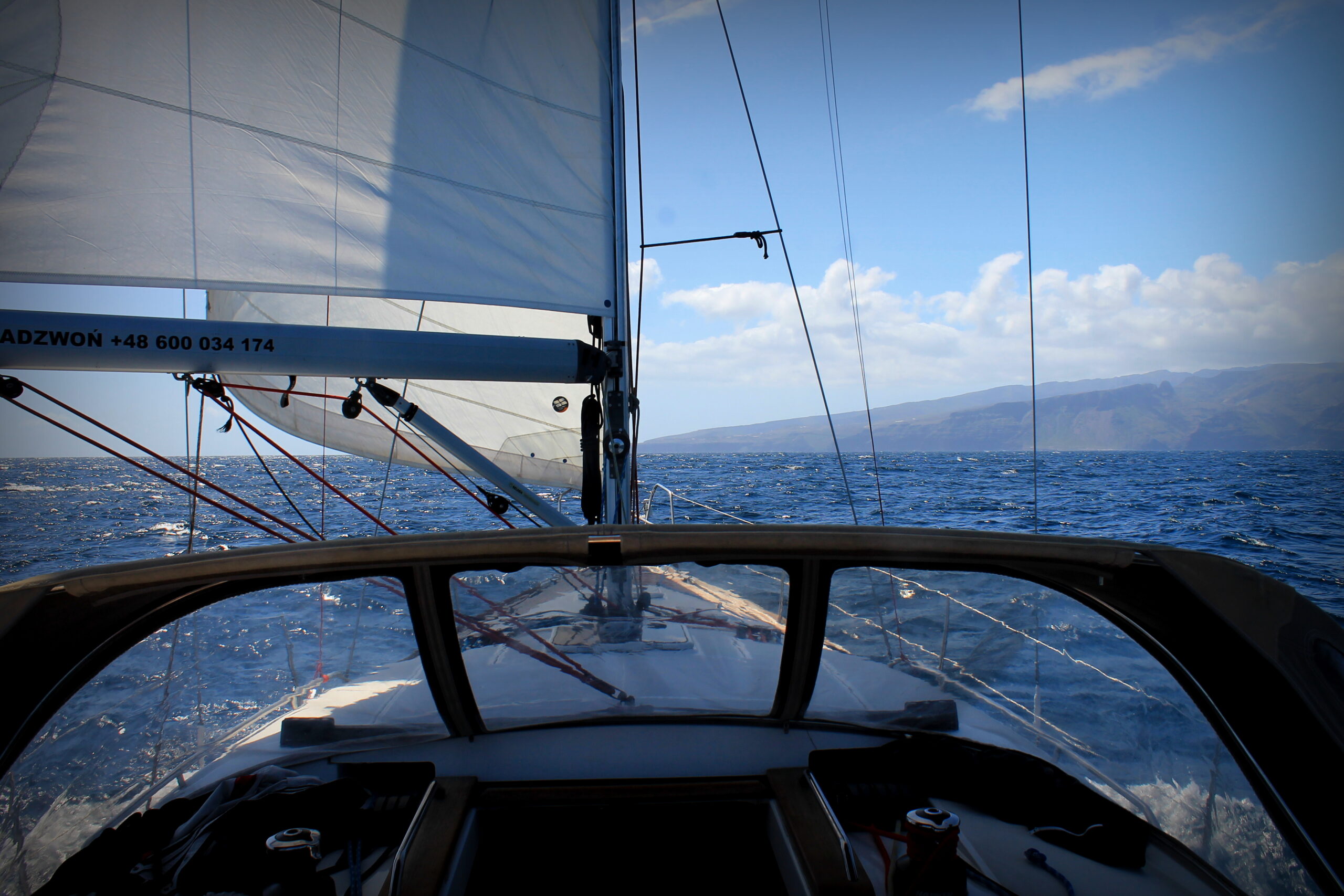 Na pierwszy rejs wybraliśmy się na Teneryfę i La Gomerę. Jacht czekał w porcie San Agustin jakieś 20 min od lotniska więc bardzo szybko znaleźliśmy się na pokładzie gdzie powitał nas kpt.Sławek, z którym po zaokrętowaniu załogi debatowaliśmy nad rzeczywistą trasa rejsu jaką przyniosła nam pogoda. Na początek 55 węzłów na oceanie i 45 w porcie, nasz jacht przechyla się na zawietrzną a jeszcze nie wypłynęliśmy. Na szczęście do pierwszego windsurfingowego spotu da się dotrzeć autobusem ( 30 min ).