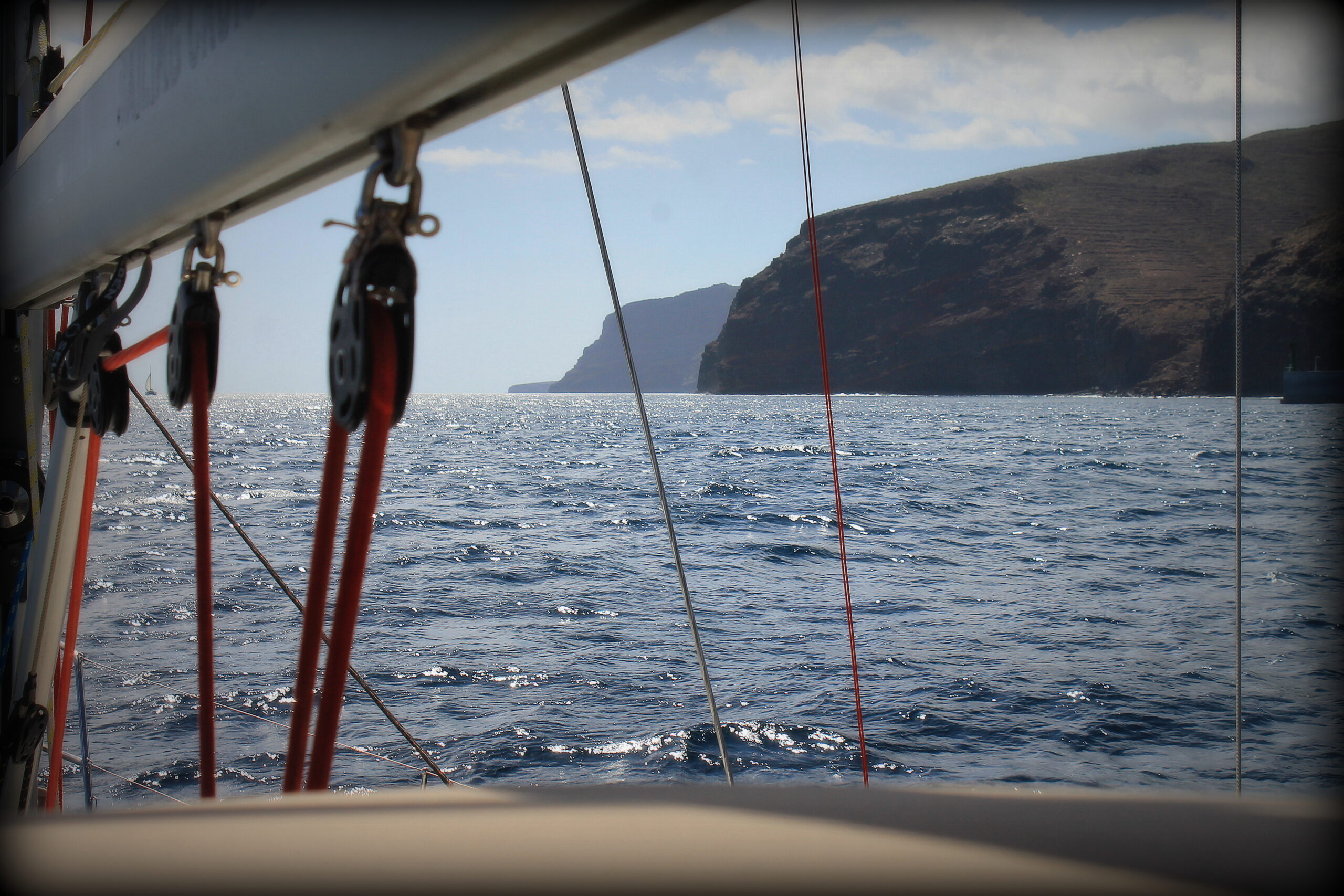 Nasz kapitan wypatruje w prognozie okno wiatrowe i znikamy na zachód zgodnie z planowaną trasą rejsu. Skoro nie da się pływać na desce pożeglujmy trochę po zachodniej stronie Teneryfy gdzie wiatr jest zdecydowanie słabszy ( 25 knt ). Szukając miejsc na surf docieramy do Los Gigantes, mariny której nazwa wzięła się od Acantilados de los Gigantes czyli klifów olbrzymów, pod którymi znajduję się port. Pod tym ponad 600m klifem spędzamy kolejny hiszpański wieczór z dobrym jedzeniem i podglądaniem prognozy, która znowu się zmienia. Marzec na Atlantyku ma swoje uroki 😉